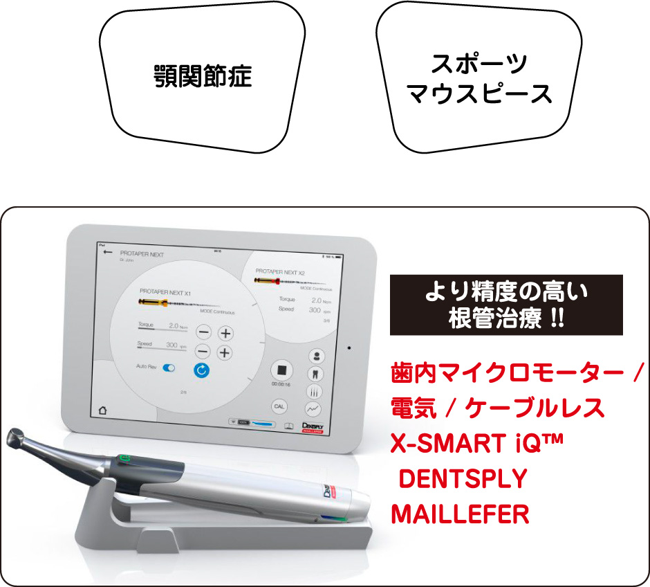 親知らずの気になる痛みや、口腔内の出来物や出血、顎関節症が疑われる顎の痛み、口腔ガンなど、お口の中やお口まわりの様々な症状に対応いたします。従来大学病院などで受けなければならない診療が当院では可能です。「これは歯医者でいいのかな?」と迷われても、まずはお気軽にご相談ください。